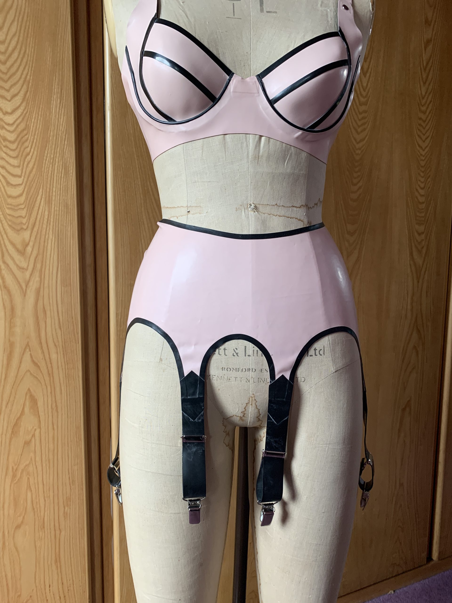 Six strap suspender belt with adjustable suspenders . Clip ends.